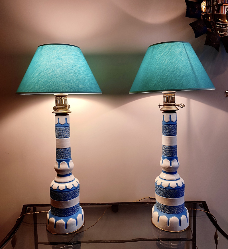Paire de lampes en terre chamottée de Valerie Stempowska édition Teo Leo