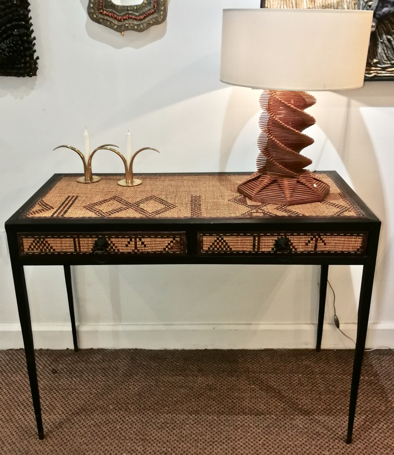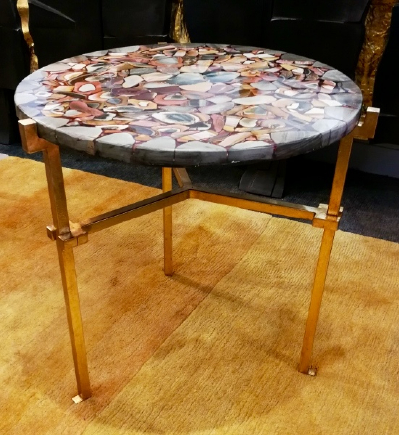 Guéridon en fer battu avec plateau de pierres reconstituées circa 1940