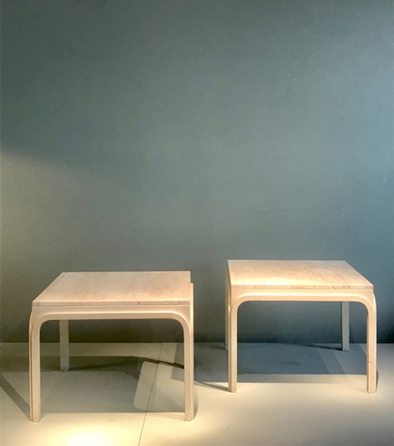 Paire de tables en bois laqué, plateau en travertin, travail italien circa 1960