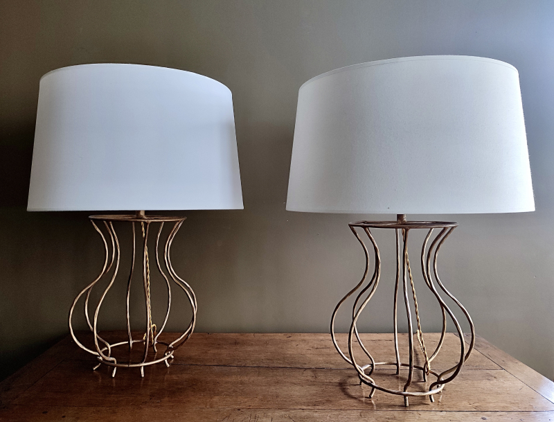 Pair of wrought iron lamps by Frédéric de Luca, cast by Pierre Basse, circa 1980